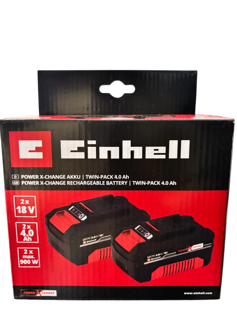 Ez a két darabos, 18 V-os, 4,0 Ah-s lítium-ion akkumulátor szett az Einhell Power X-Change rendszer része, és minden kompatibilis Einhell géphez használható. A TWIN-PACK technológiának köszönhetően a két akkumulátor együttesen akár 36 V teljesítményt is biztosíthat nagyobb igénybevétel esetén.