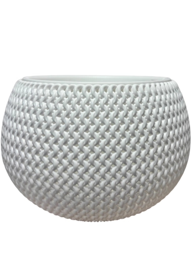 Stílusos, kötött mintázatú műanyag kaspó, amely tökéletes választás beltéri és kültéri növényekhez egyaránt. Tartós, időjárásálló anyagból készült, modern megjelenéssel.