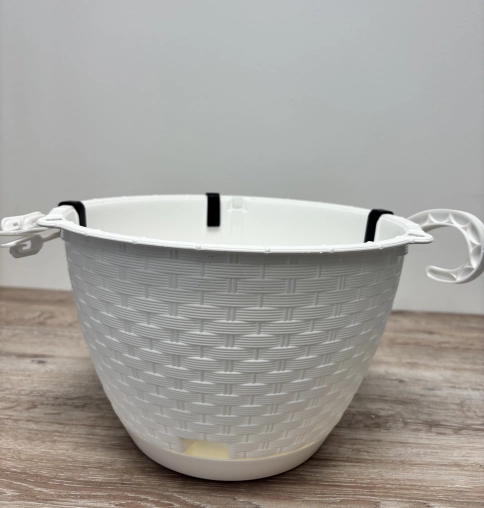 Dekoratív, rattan hatású függő kaspó strapabíró műanyagból, amely ideális választás erkélyre, teraszra vagy beltéri elhelyezésre is. Könnyű, időjárásálló kialakítás, beépített akasztóval.