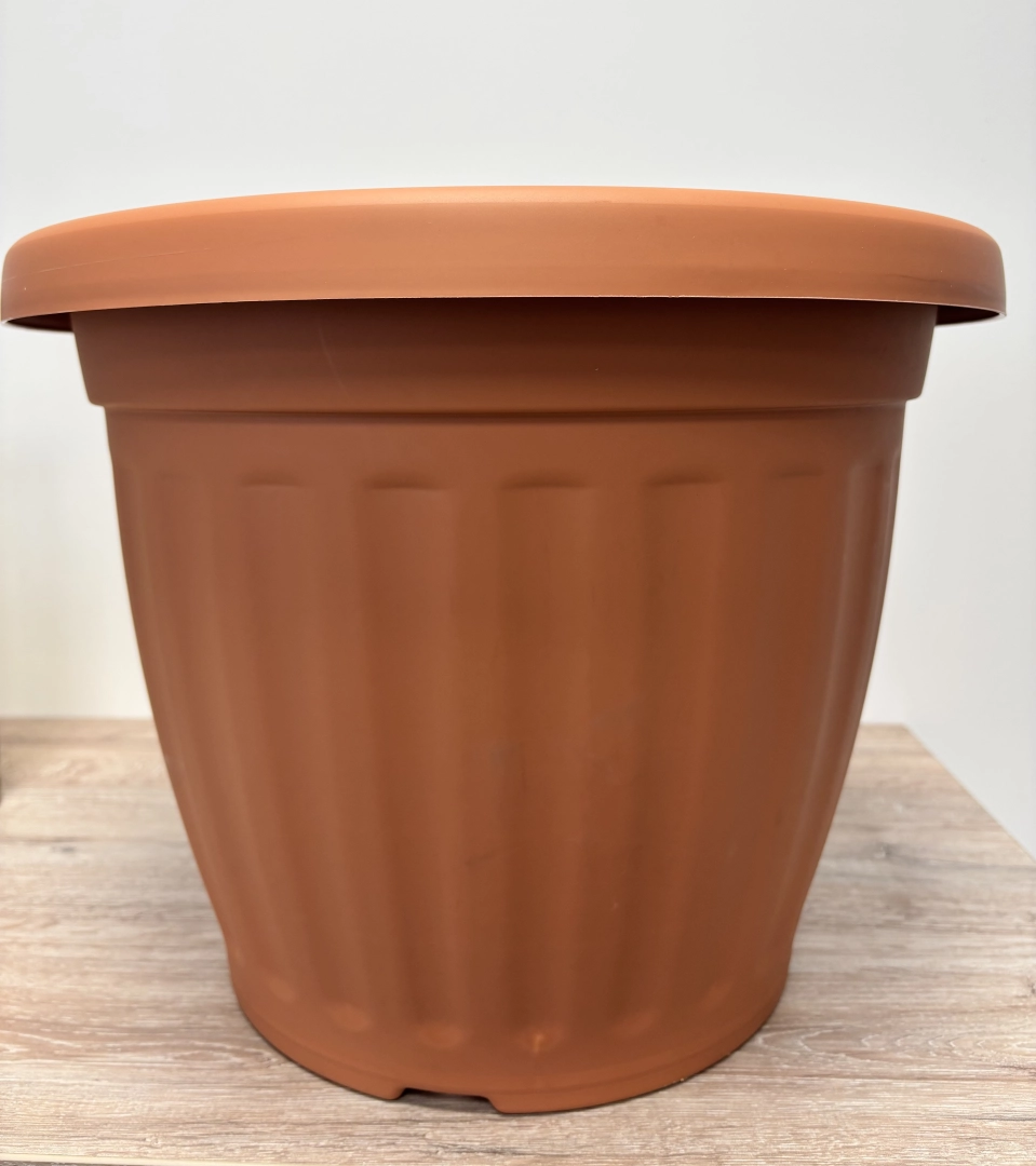 Tartós, UV- és időjárásálló műanyagból készült, így beltéren és kültéren egyaránt használható. Ideális nagyobb növényekhez, például pálmákhoz vagy leanderekhez. Az alján vízelvezető furatok segítik a felesleges víz elvezetését.