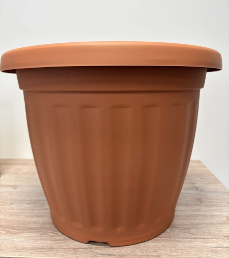 Ez a bordázott falú virágcserép esztétikus megjelenésével kültéren és beltéren is megállja a helyét.