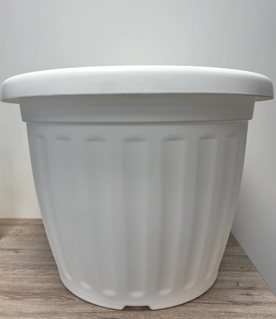Tartós, UV- és időjárásálló műanyagból készült, így beltéren és kültéren egyaránt használható. Ideális nagyobb növényekhez, például pálmákhoz vagy leanderekhez. Az alján vízelvezető furatok segítik a felesleges víz elvezetését.